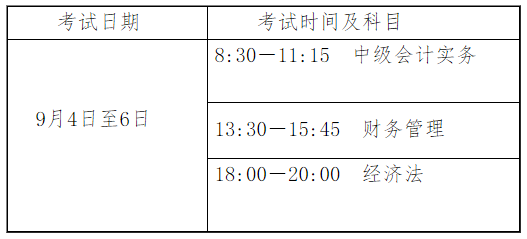 中級會計資格考試于2021年9月4日至6日舉行,共3個批次,各科目具體考試時間如下: